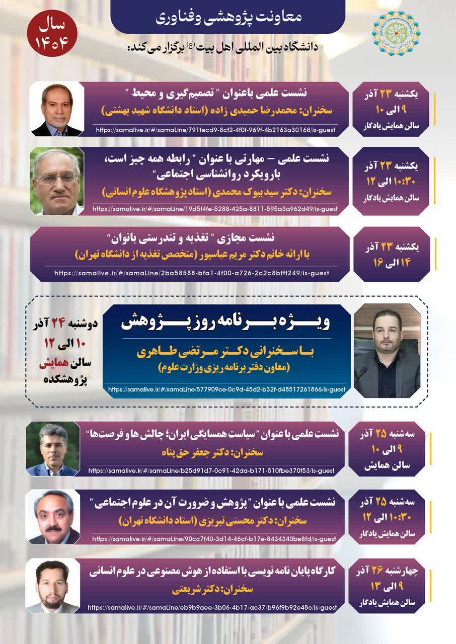 اطلاعیه: مجازیشدن فعالیتهای آموزشی بهدلیل آلودگی هوا با توجه به مصوبه «کارگروه اضطرار آلودگی هوای استان تهران»، کلیه فعالیتهای آموزشی دانشگاه در روز شنبه ۸ آذر ماه ۱۴۰۴ بهصورت غیرحضوری و مجازی برگزار خواهد شد. نحوه برگزاری کلاسهای مجازی: ۱. …